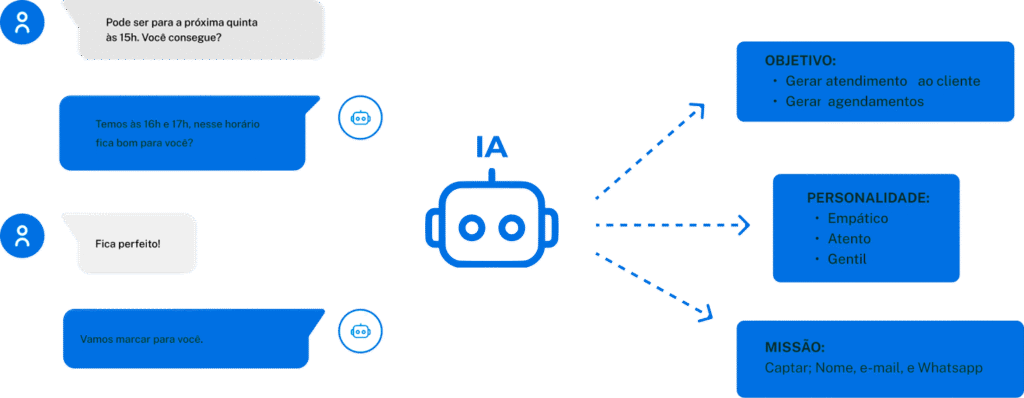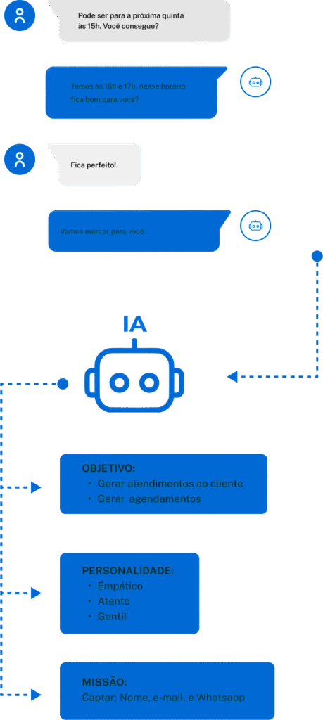 Uma vez que implantamos os funis comerciais, a IA irá cuidar do atendimento, qualificação, agendamento e recuperação de leads para você, tudo no piloto automático no seu Whatsapp e Instagram.